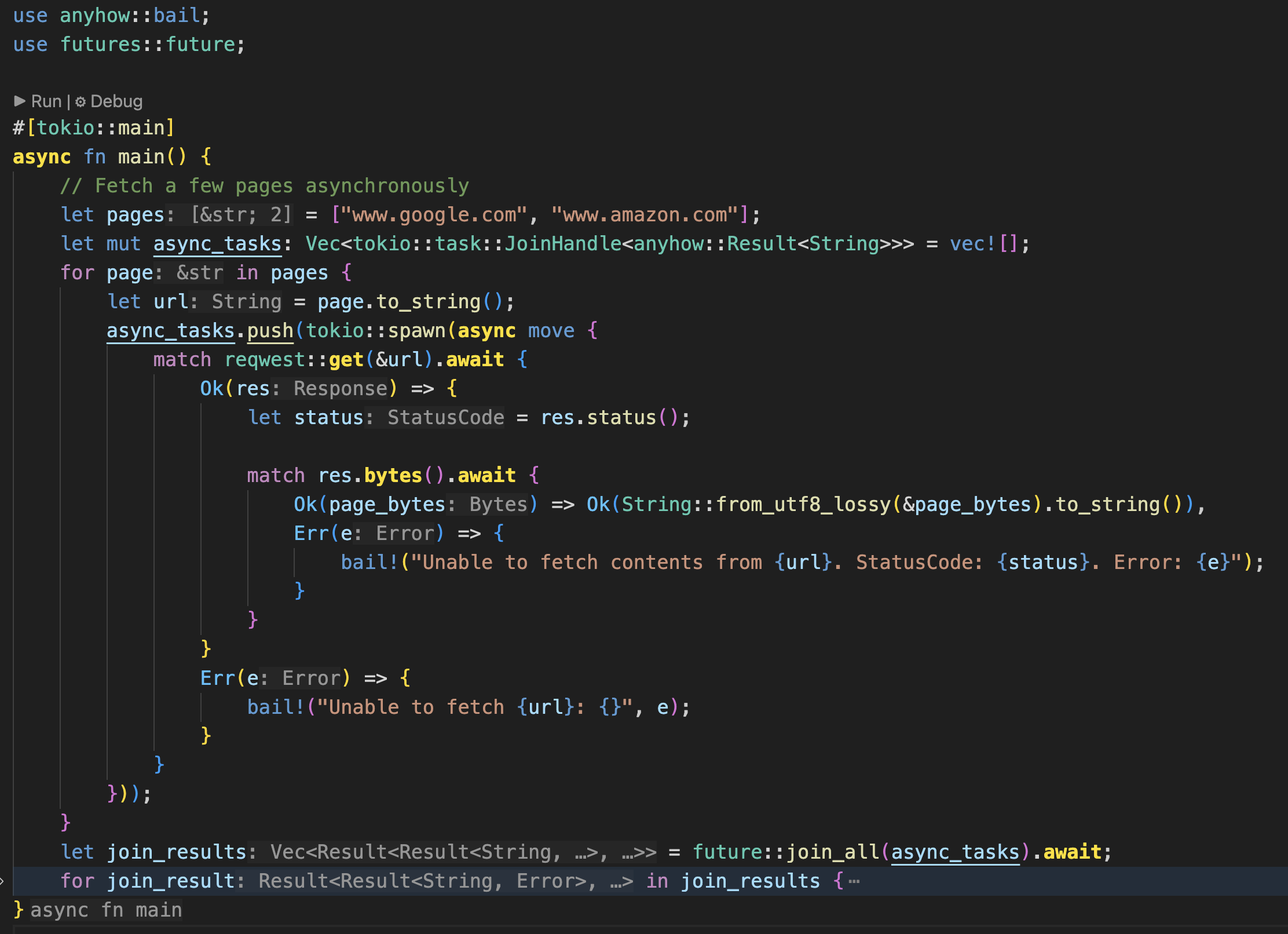 Highlight async/await keywords using bold golden yellow.